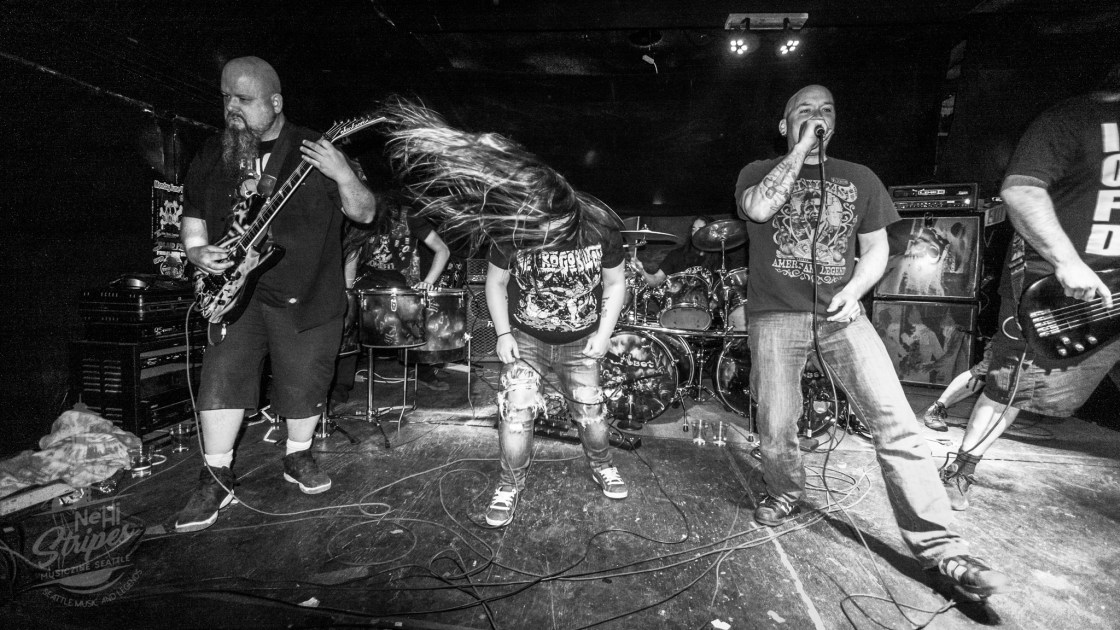 The venue and bands were evenly matched that night for ambiance, vibes, and power. The crowd, as I mentioned before, was like a large family; it’s something I really appreciate about the music scene here around the Puget Sound. For me, Death Metal is a genre that I enjoy watching live more than anything – because the show itself is a true partner in the genre. Experiencing one first hand – the stage antics, the amps turned to 11, the face paint, machine-gun solos, and screaming vocals – really makes the music seem more relevant than just listening to it in a stream. The full meal deal makes it better.