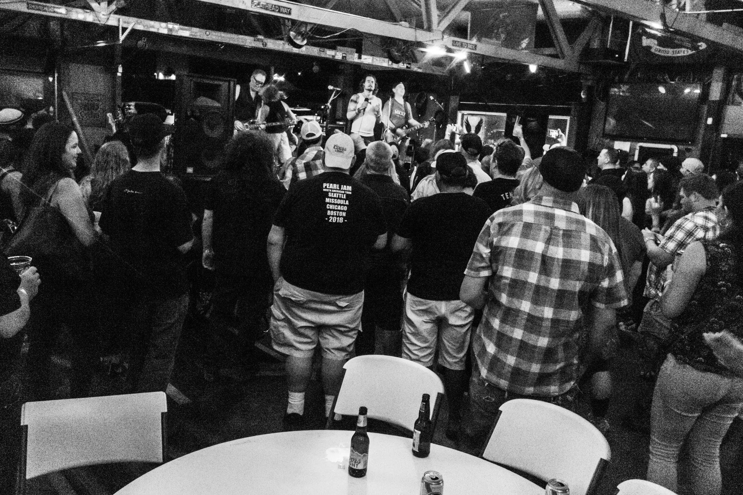I followed the band from Seattle to Idaho, and documented the show that night. The show was dedicated to 30 Years Of Pearl Jam – music that has stirred generations to love, feel, act, and think. Cruisers is a unique experience and a perfect place to reenter the live stages; situated on what used to be US Highway 10, the bar has “drive through doors” that allow arriving motorcycles to literally roll through the building before park. While I was there, no fewer than three riding groups took the opportunity to run past the bar on their bikes!