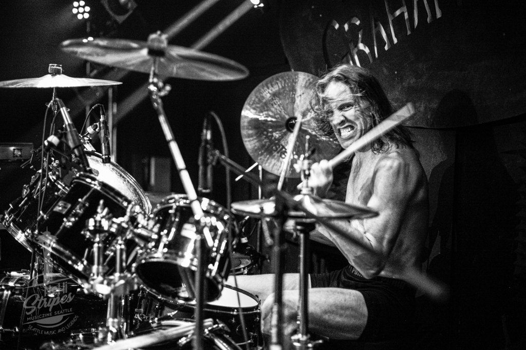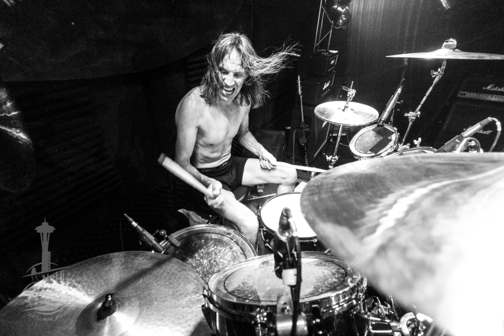 He enters the stage in a pair of boxers, keeps a tight reign on the timing, and ignites a 2-hour long heatwave of physical pyrotechnics that keeps everyone entertained. I’ve seen Mad Man perform with multiple bands – including Hammerdog, Metal Heart (Accept tribute), plus Lewd N Crued (Crue tribute). He spins his sticks, mugs for the lens, and translates the power he feels into a show like no other!