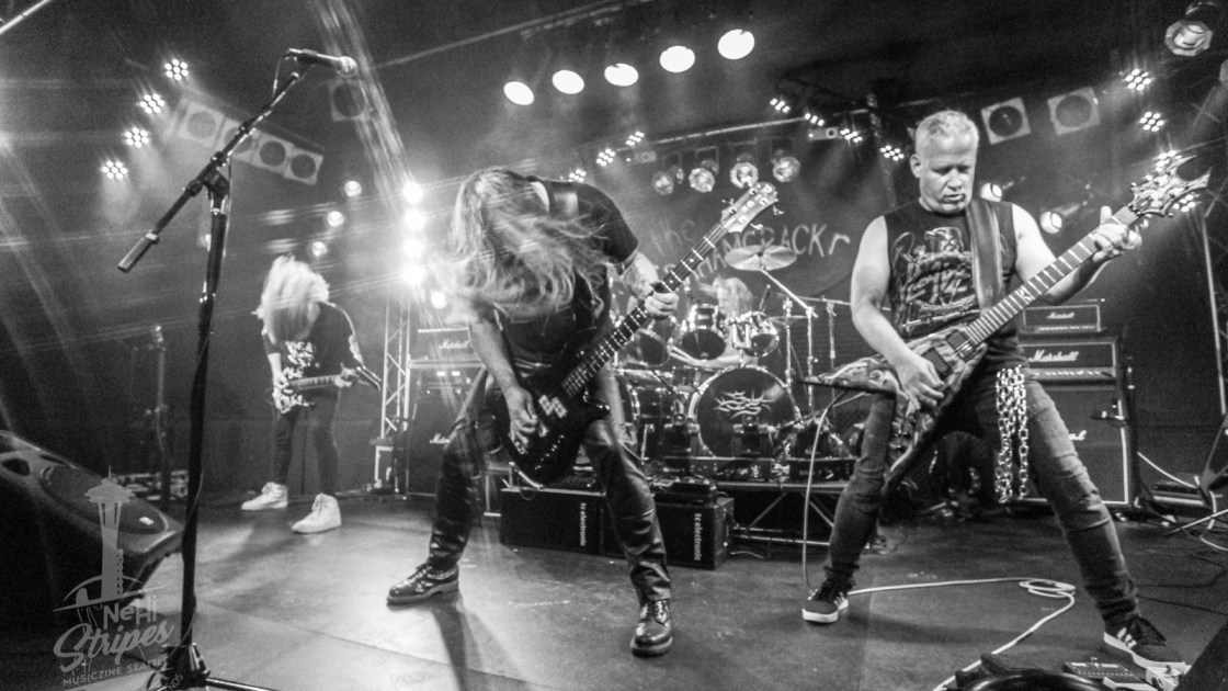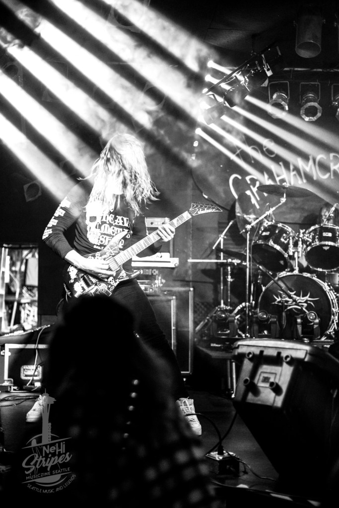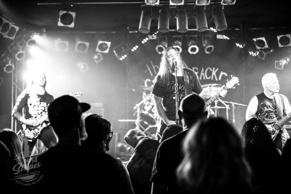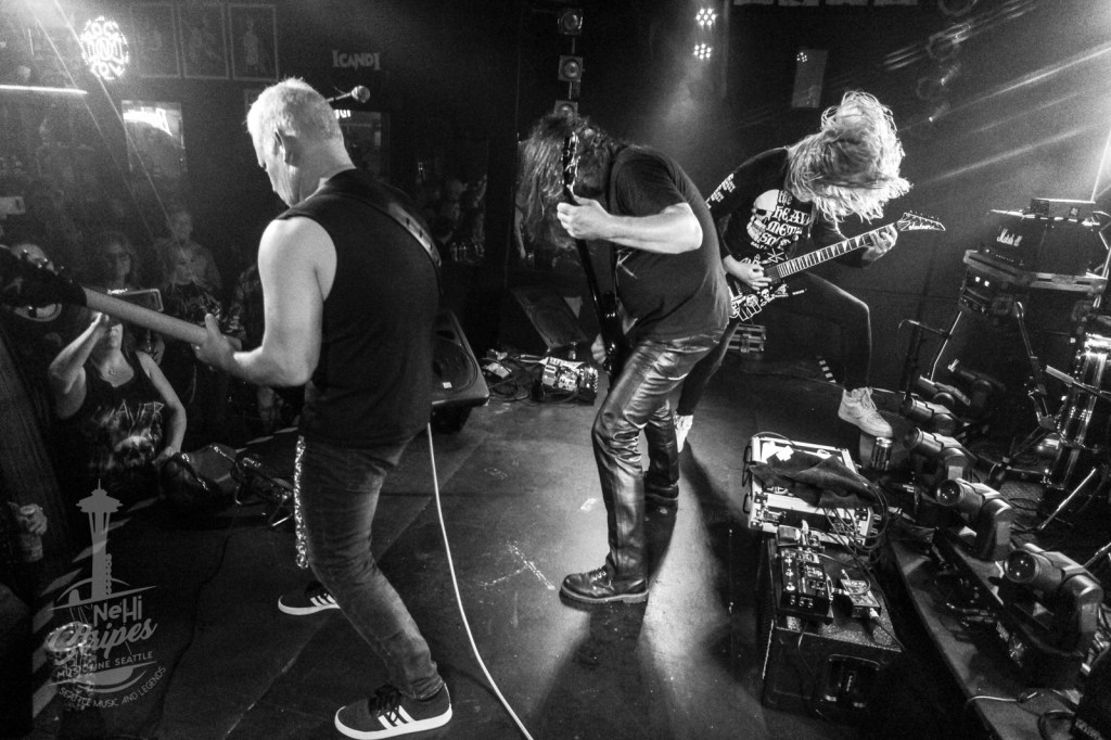 I was able to attend their inaugural show at a private club in Renton WA on 7 August 2021. I was impressed at how tight the band was, since they had only one dress rehearsal and one sound check under their belts prior to this show. Even if you aren’t a fan of Thrash Metal, there is a certain energy and character to appreciate that is brought on when the band and the fans blend in the same place. And this night was like watching the original monsters of thrash right in front of our noses!