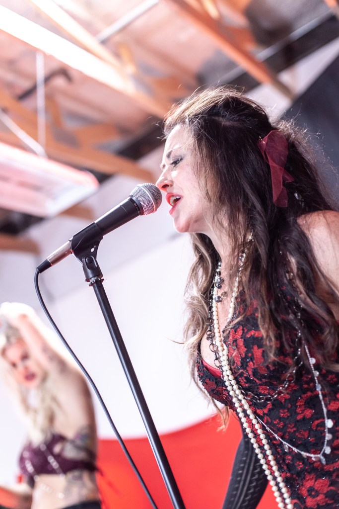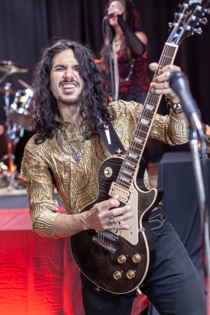 Sarah’s heavy hit on the drums gives the 80s sound a contemporary update. She comes to the band with a long line of performing credentials from both U.S. coasts.