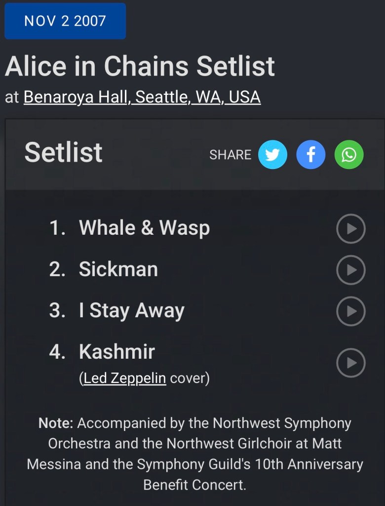 In addition to Alice In Chains’ original material, they also played a cover of Led Zeppelin’s “Kashmir” while backed by over 200 musicians, including the Northwest Symphony Orchestra and the Northwest Girls Choir.